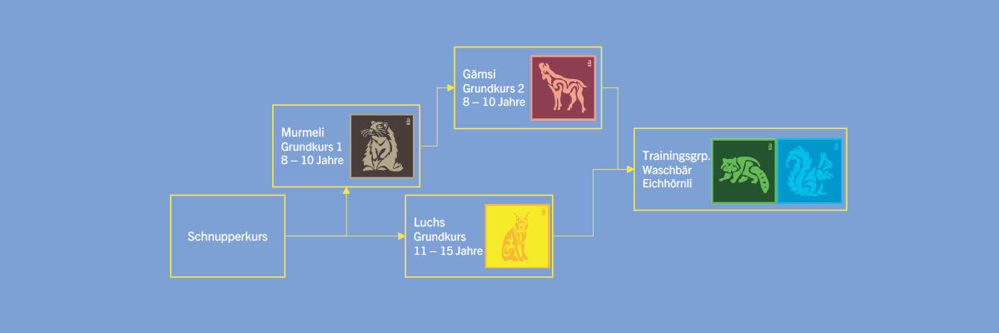 Ab 2026 beinhalten die Kinderkurse im Klettern bestimmte Lernziele, die bei Erfüllung mit einem Abzeichen belohnt werden und als Voraussetzung für den nächsten Kurs dienen.
